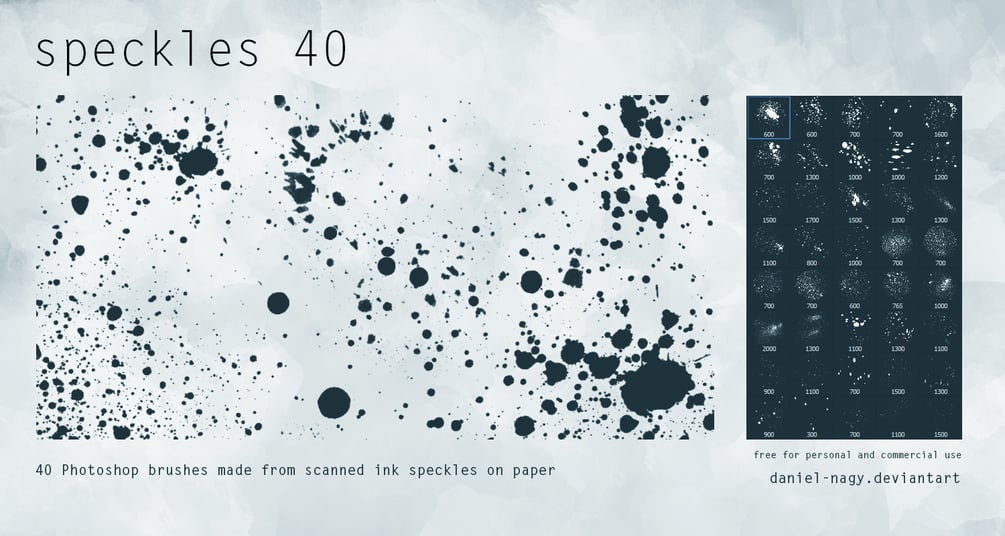 The brushes included in this set were created by scanning some speckles made with wood stain on white paper. Have fun using them!