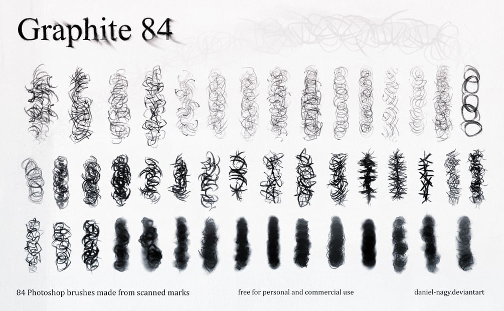 The brushes included in this set were created by scanning some graphite stick marks made on thick paper. Have fun using them!